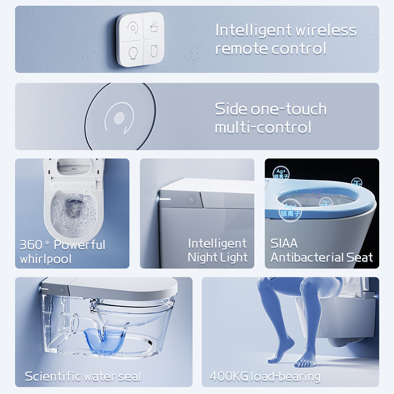 | إبراز: | مرحاض ذكي مع مقعد مُدفأ,المرحاض الذكي المعلق على الحائط مع جهاز التحكم عن بعد,المرحاض الذكي الفاخر المزلاج الذاتي التنظيف,wall hung smart toilet with remote,luxury smart toilet self-cleaning glaze |